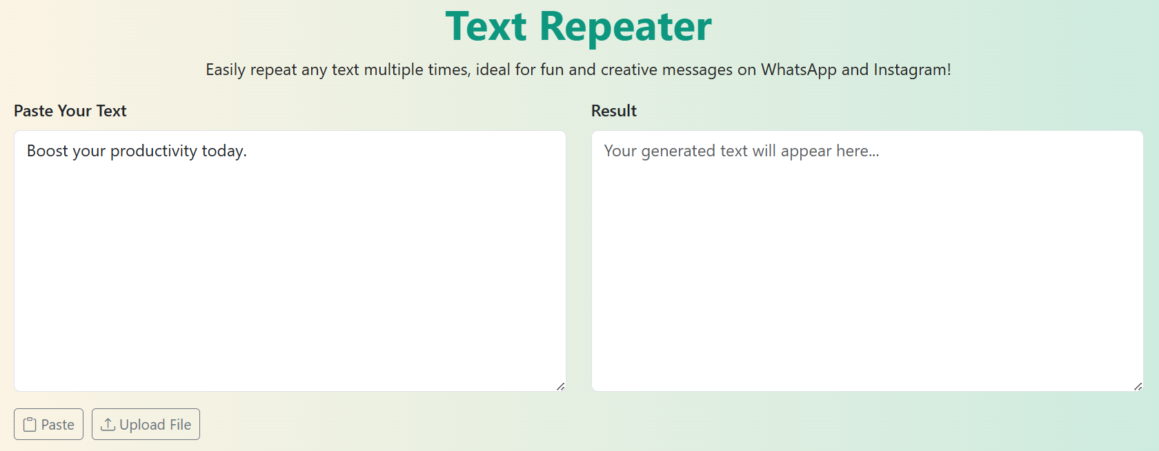 There are occasions when a word, sentence or paragraph are repeated several times. This is time consuming and inaccurate when done manually. Text Repeater is of great use there.